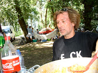 Claro não tinha sombra para fugir dele e numa secura doida visionei os últimos dois quilómetros, já com o rio apinhado de veraneantes que por baixo da frescura das árvores, que lhes deram um colorido através do enfeite pelas centenas de mesas a cheirar a frango e coelho estufados. Levaram-me a parar bruscamente e quase piedosamente pedir água a um casal que lamentavelmente me disse que não tinha. Eram só copos com restos de vinho.